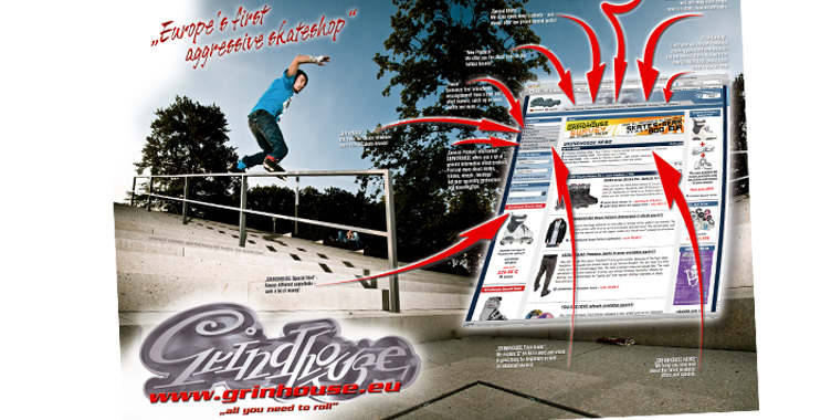 Die Grindhouse GmbH ist einer der größten Aggressive InlineSkate Shops in Europa. Die Marke Grindhouse ist weltweit bekannt für alle Produkte rund um Aggressive Skates und trendy Skatewear. Agenturaufgabe ist es, neue Kunden zu generieren.