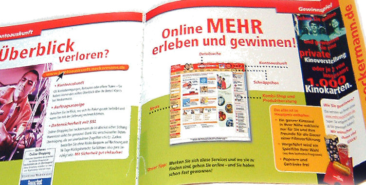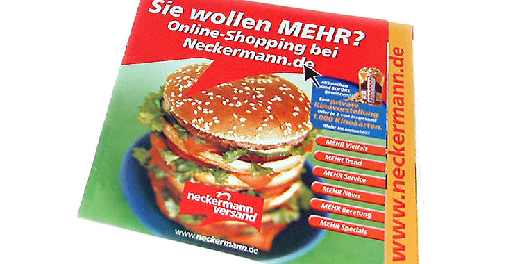 Für neckermann entwickelten wir neben verschiedensten Möbelkatalogen einen Einhefter, der den neuen Onlineshop bewirbt. Die wichtigsten Inhalte: Diverse Zusatznutzen des Onlineshops, wie etwa 3-D Ansichten der Ware, Schnellsuche, Urlaubs- und Schnäppchenwelt, etc.