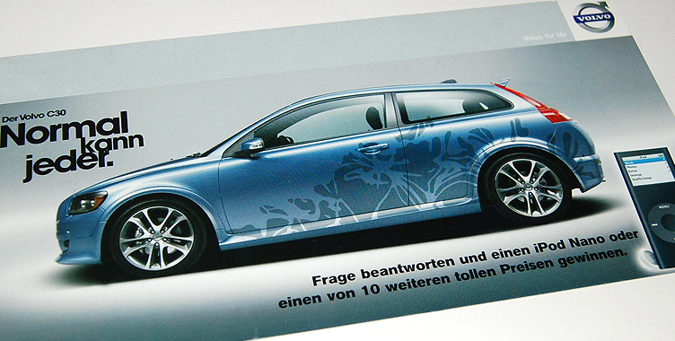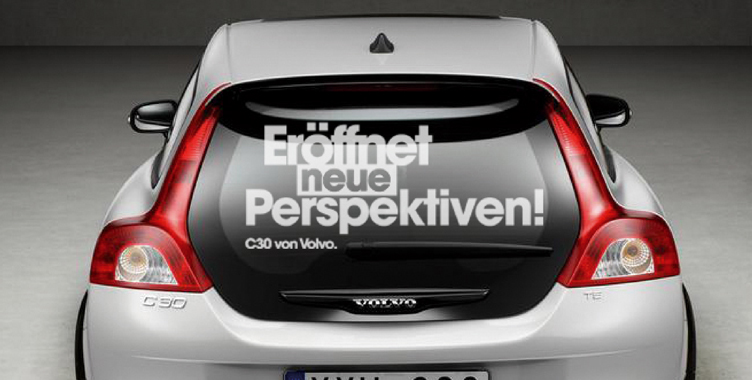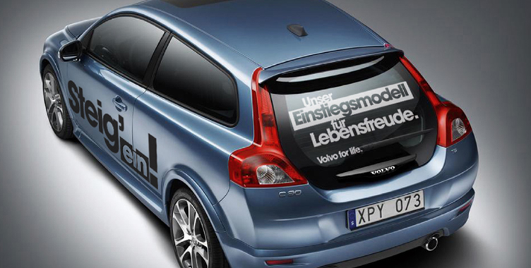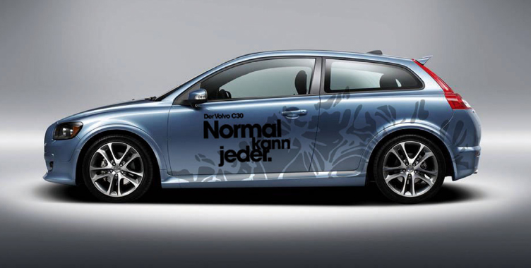 Zur Einführung des Volvo C30, der in der Kompaktklasse gelauncht wurde, entwickelten wir aufmerksamkeitsstrarke Beklebungen für Händler- und Promotionfahrzeuge.